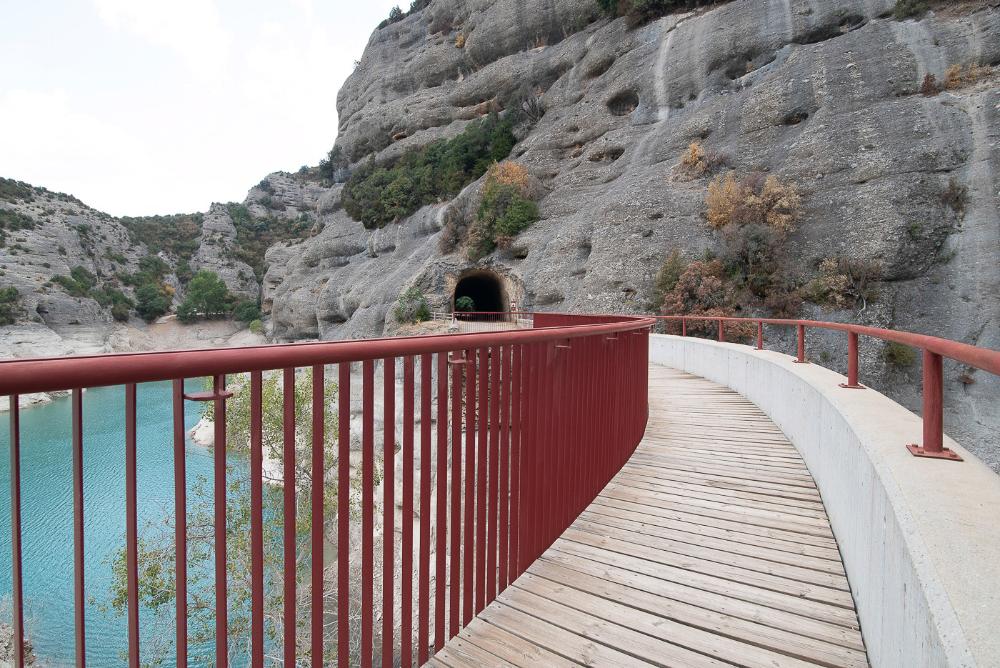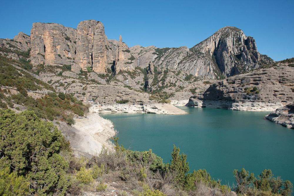Este impresionante lugar que forma el agua del embalse, el propio río y sus barrancos y los monumentales mallos que lo rodean, es una visita obligada para todo aquel que desee conocer el Parque Natural de Guara y disfrutar de la naturaleza y el silencio, en el término municipal del Ayuntamiento de Loporzano. Información turística de la Hoya de Huesca.